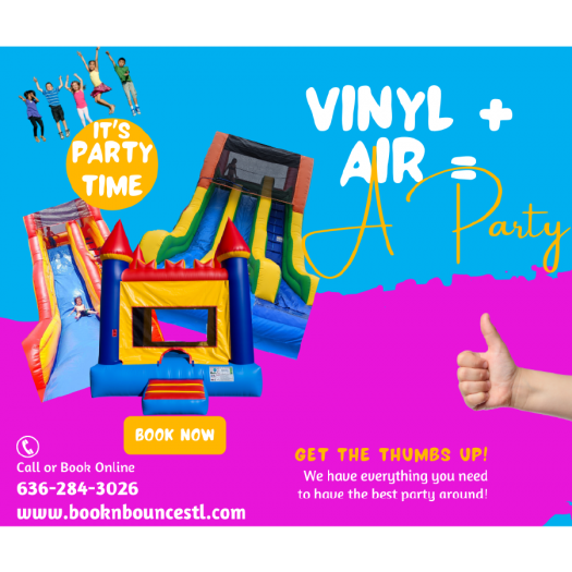 Book-N-Bounce STL is a bounce house rental company based in St. Charles, Missouri, specializing in providing a variety of inflatable entertainment options such as bounce houses, water slides, and obstacle courses for parties and events. Known for our reliable service and quality equipment, we cater to a wide range of events, making us a popular choice for family gatherings, community events, and children's parties in the St. Louis and St. Charles areas.