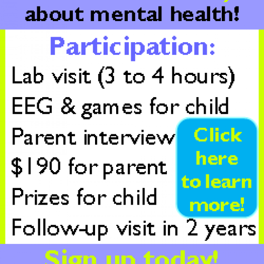 Seeking children ages 5-6 for a research study about mental health! Lab visits includes an EEG and games for child, a parent interview, and compensation of $190 and prizes!